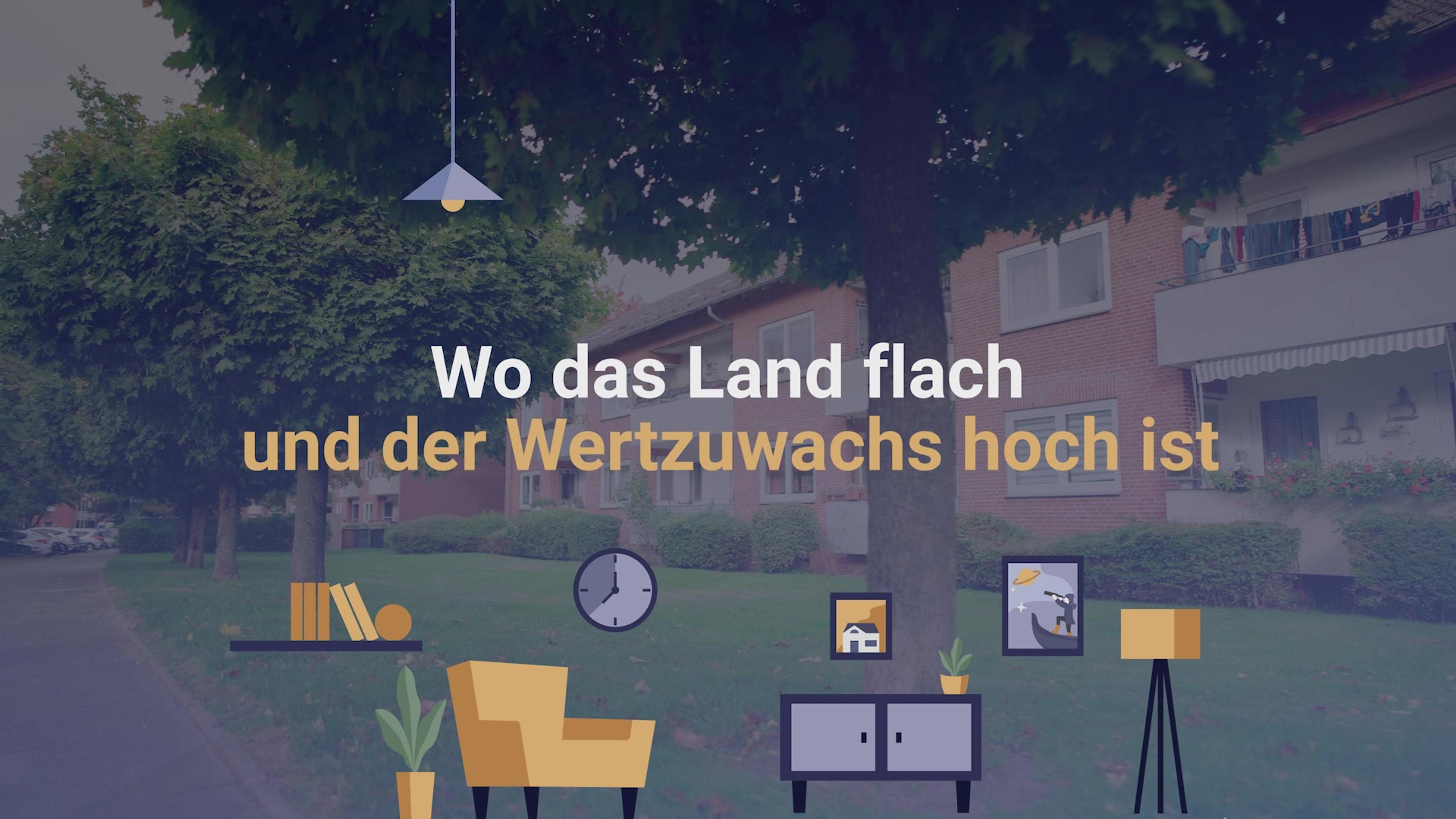 - Im Umkreis von fünf Gehminuten zwei Supermärkte, Bäckerei, Gemeinschaftsschule und Spielplatz
