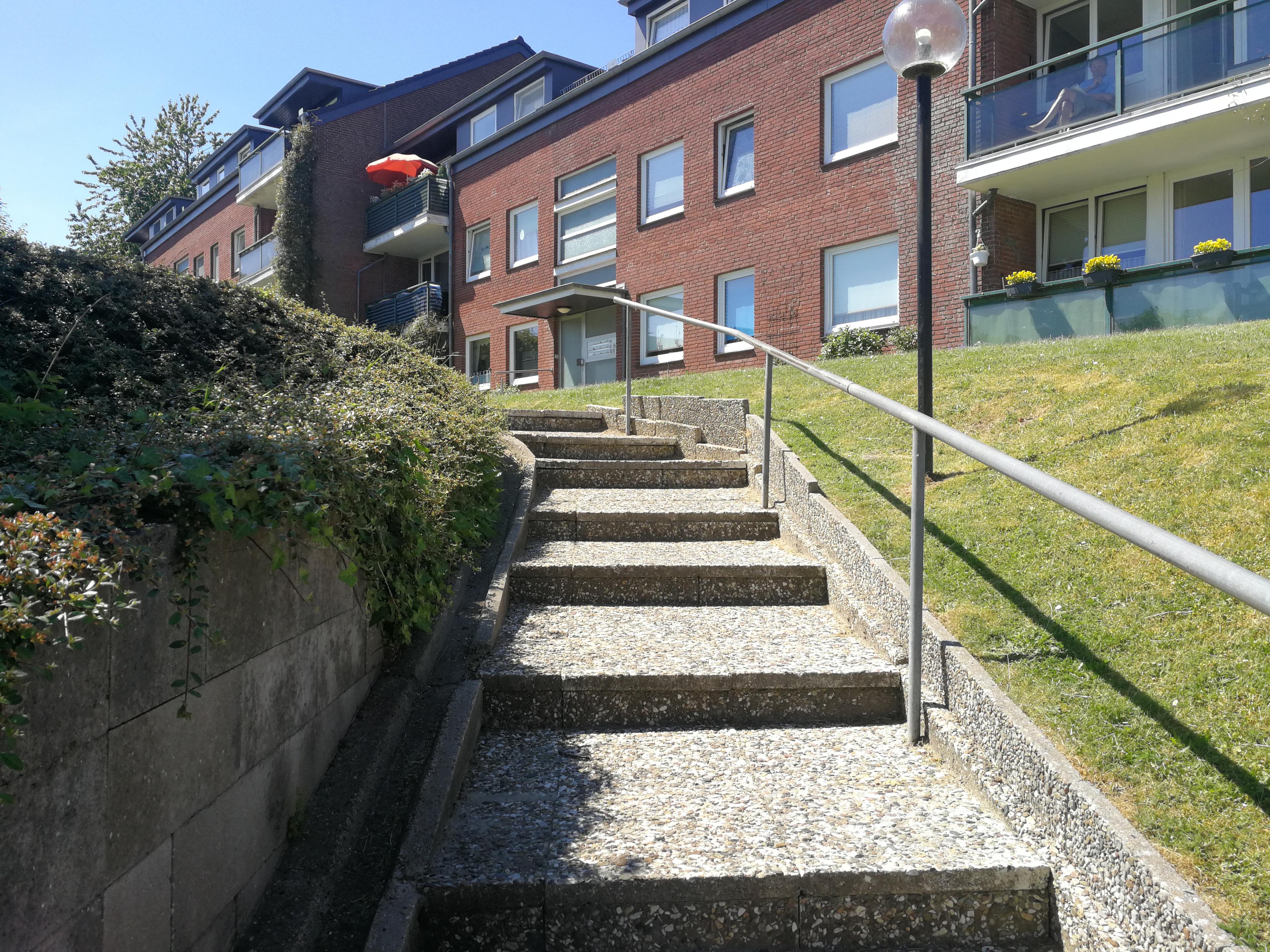 Bei diesem Objekt handelt es sich um zwei Mehrfamilienhäuser, die in einem Baukörper zusammengefasst sind. Über die zwei Eingänge sind jeweils neun Wohnungen zu erreichen. Angeboten werden 16 der insgesamt 18 Wohneinheiten. Mit Wohnungsgrößen zwischen 61 und 103 Quadratmetern, verteilt auf zwei bis vier Zimmer, bietet das Objekt eine große Bandbreite. Im Keller steht für jede Wohnung ein Abstellraum zur Verfügung. Darüber hinaus finden sich hier Gemeinschaftsräume, zum Beispiel zum Abstellen von Fahrrädern. Die Immobilie wurde 1974 auf einer kleinen Anhöhe erbaut. Dadurch eröffnet sich, zumindest für die oberen Wohnungen, ein wunderbarer Fernblick bis zur Schlei. Die Häuser und Außenanlagen befinden sich in einem ausgezeichneten, sehr gepflegten Zustand. Außerdem sind in der Vergangenheit einige Sanierungsmaßnahmen umgesetzt worden, die das Objekt technisch aufgewertet haben. So wurde im Jahr 2013 das Dach neu eingedeckt und gedämmt. Zwei Jahre später erfolgte die Umstellung der Heizung auf Gas inklusive des Austauschs der gesamten Heizungsanlage. Zug um Zug wurden außerdem die Fenster größtenteils durch moderne Kunststofffenster ersetzt. Die von allen Bewohnern genutzten Grünflächen stehen den Gebäuden in Sachen guter Pflege und Erscheinungsbild in nichts nach. Momentan sind alle Wohnungen, die allesamt zu einer bestehenden Wohnungseigentümergemeinschaft gehören, vermietet.